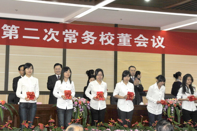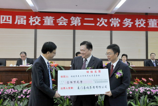 1028,集美大學(xué)校董歡聚,嘉賓云集。省長、校董會(huì)主席出席第四屆校董會(huì)第二次常務(wù)校董會(huì)議并作講話。省長、副省長陳樺、我司董事長王龍雛等為集大優(yōu)秀學(xué)生代表頒發(fā)“象嶼集團(tuán)獎(jiǎng)學(xué)金”。