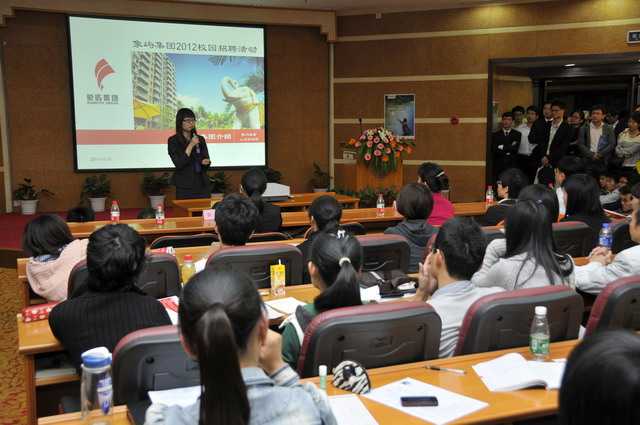 2012年象嶼集團(tuán)全國校園招聘首場宣講會于11月23日晚在廈門大學(xué)拉開帷幕。集團(tuán)人力資源總監(jiān)林志勇、象嶼股份人力資源部經(jīng)理林焱為同學(xué)們進(jìn)行了精彩的宣講并回答了同學(xué)們現(xiàn)場的提問,鼓勵廈大的優(yōu)秀學(xué)子們加入到象嶼的大家庭。據(jù)悉,此次宣講會吸引了近500位應(yīng)屆生參加,場面火爆,提問環(huán)節(jié)積極踴躍,會后現(xiàn)場收到簡歷近500 份。