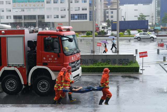 為了提高廈門國際航運中心全員的應(yīng)急應(yīng)變能力,以全國第十三個“安全生產(chǎn)月”為契機,6月19日下午,2014年象嶼保稅區(qū)應(yīng)急綜合聯(lián)動演練在此成功舉辦。此次演練由象嶼保稅區(qū)管委會安監(jiān)局主辦,象嶼集團、象嶼高尚物業(yè)承辦,湖里派出所、湖里消防八中隊、象嶼集團員工代表、高尚物業(yè)公司全體員工及航運中心租戶代表逾百人參加了此次演練。