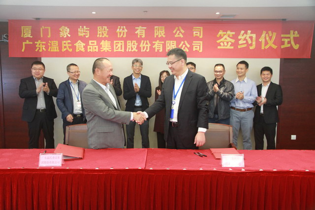 12月27日,廈門(mén)象嶼股份有限公司與廣東溫氏食品集團(tuán)股份有限公司舉行了合作簽約儀式,象嶼股份鄧啟東總經(jīng)理與溫氏股份何維光副總裁分別代表雙方公司在《戰(zhàn)略合作框架協(xié)議》上簽字。此次戰(zhàn)略合作的簽署將進(jìn)一步鞏固和延伸雙方在農(nóng)產(chǎn)品產(chǎn)業(yè)鏈上的深度合作,實(shí)現(xiàn)共贏發(fā)展。