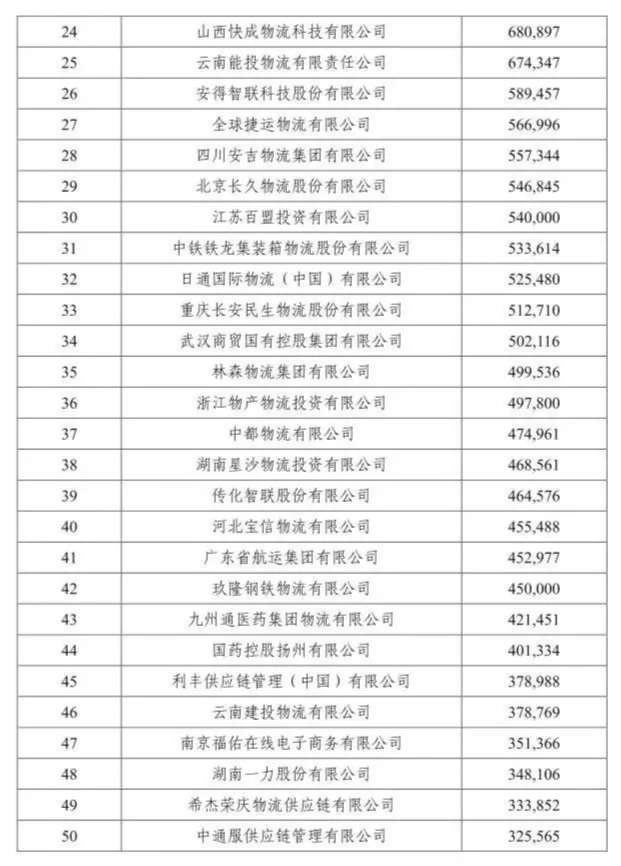 該榜單由中國物流與采購聯(lián)合會組織評選,按照重點物流企業(yè)統(tǒng)計調(diào)查結(jié)果提出了2019年度中國物流企業(yè)50強排名。據(jù)悉, 50強物流企業(yè)2018年物流業(yè)務(wù)收入合計9833億元,按可比口徑計算,同比增長16.9%。50強物流企業(yè)門檻提高到32.6億元,比上年增加3億元。
