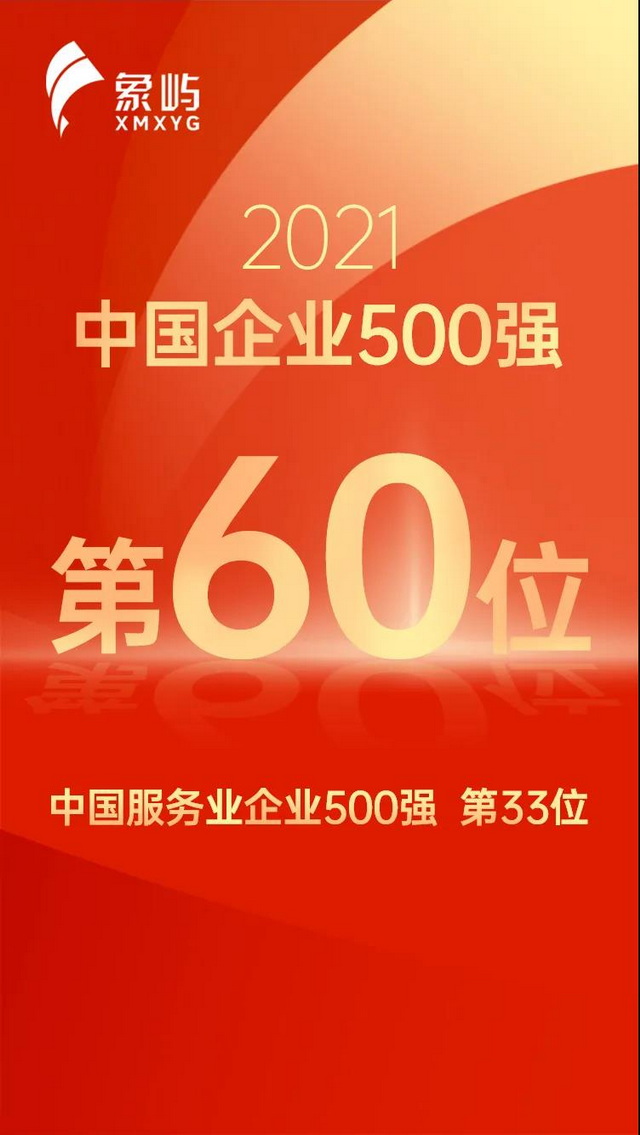 9月25日,中國企業(yè)聯(lián)合會、中國企業(yè)家協(xié)會發(fā)布2021年中國企業(yè)500強榜單,象嶼集團以37483544萬元人民幣的營收排名第60位,較去年前進17位;在同期發(fā)布的“2021年中國服務(wù)業(yè)企業(yè)500強”中,象嶼集團位列第33位,較去年前進10位。自2007年參評榜單以來,象嶼集團已連續(xù)15年登榜,排名年年躍升。