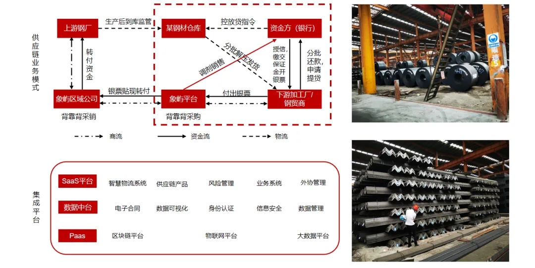 象嶼股份作為供應(yīng)鏈核心企業(yè),借助IOT(物聯(lián)網(wǎng))、區(qū)塊鏈、AI等技術(shù),圍繞塑化、鋁產(chǎn)品、鋼材等產(chǎn)品進(jìn)行倉(cāng)單質(zhì)押融資,通過(guò)數(shù)字化建設(shè),輔助背書(shū)客戶資信、貨權(quán)監(jiān)管和輔助銷售,獲取資金方的認(rèn)可,幫助中小微企業(yè)客戶增信,解決中小微企業(yè)融資難的問(wèn)題。目前象嶼智慧物流平臺(tái)已獲得建行總行、普洛斯等多家金融機(jī)構(gòu)數(shù)字化監(jiān)管倉(cāng)準(zhǔn)入,《人民日?qǐng)?bào)》等媒體也作了專題報(bào)道。