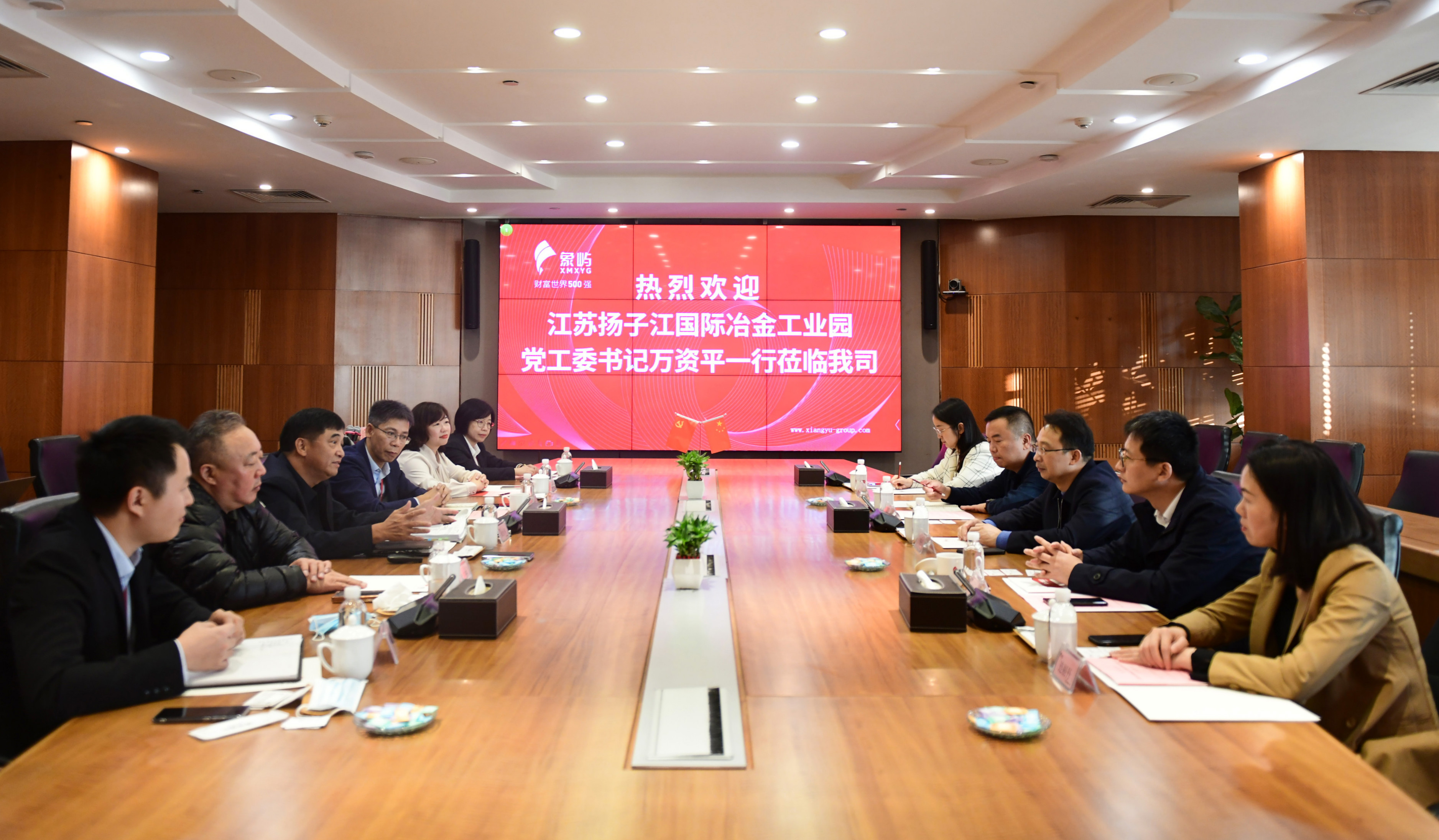 12月14日,江蘇揚子江國際冶金工業(yè)園黨工委書記萬資平一行到訪象嶼集團。象嶼集團黨委書記、董事長張水利等熱情接待。
