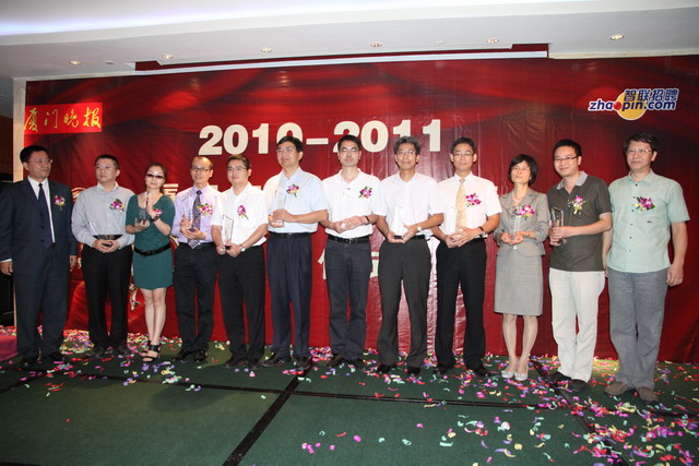 日前,在由廈門晚報和智聯(lián)招聘共同舉辦的“2010—2011廈門年度最佳雇主調(diào)查”活動中,象嶼股份從100多家受調(diào)查企業(yè)中脫穎而出,榮獲“最佳雇主”獎項。9月26日下午,象嶼股份副總經(jīng)理齊衛(wèi)東應(yīng)邀出席了頒獎儀式。
